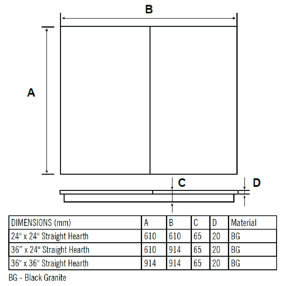 Flat-filled hearths, made from Black Granite.