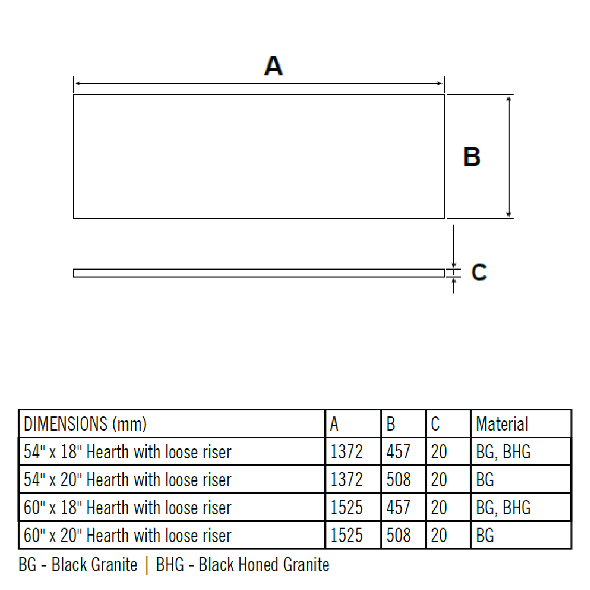 Flat-filled hearths, made from Black Polished Granite or Black Honed Granite (Matt Black).
