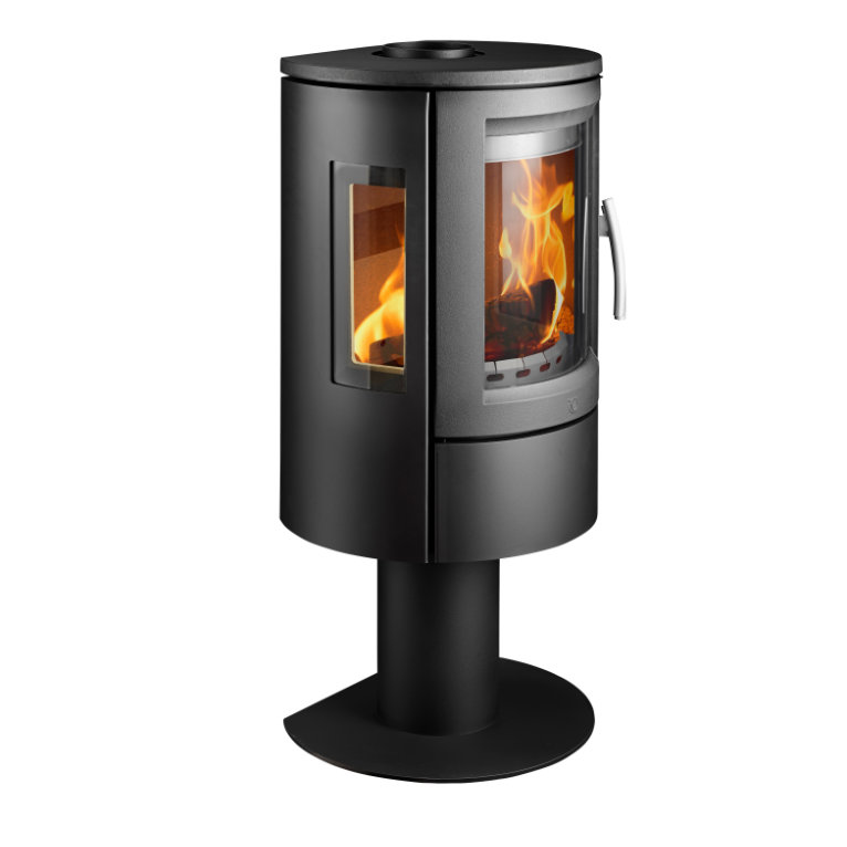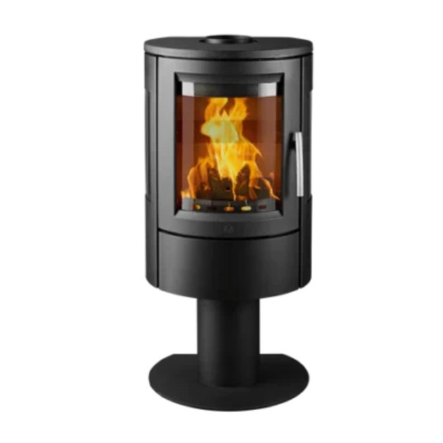 Designed with elegance in mind, the VARDE Nice AIR stands proudly on a sleek pedestal and boasts curved front and side glass panels, offering a 180° view of the flames. This striking design adds warmth, ambience, and a sophisticated focal point to your living space.