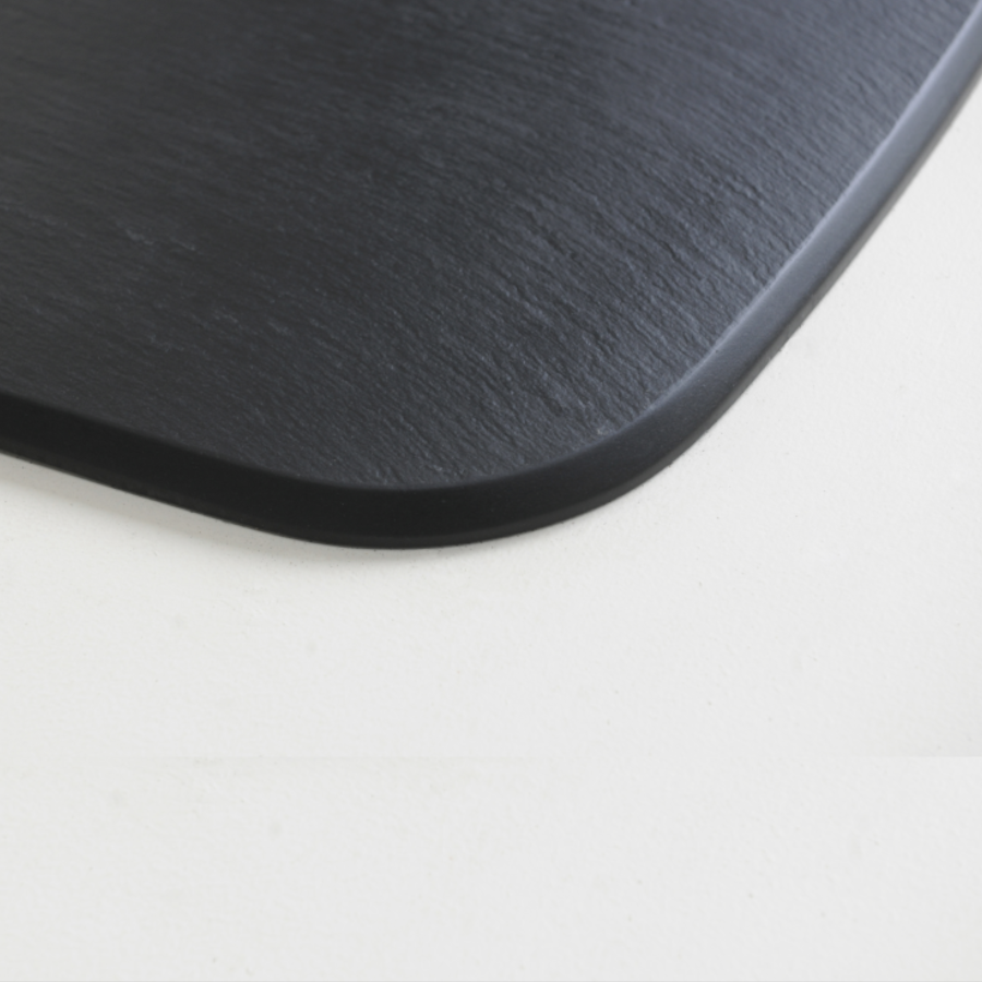 Suitable for either a square or rounded stove, the standard floor plate in slate effect stone resin has a rounded front edge, making it aesthetically very appealing. Whereas the teardrop option is perfect for corner installations.