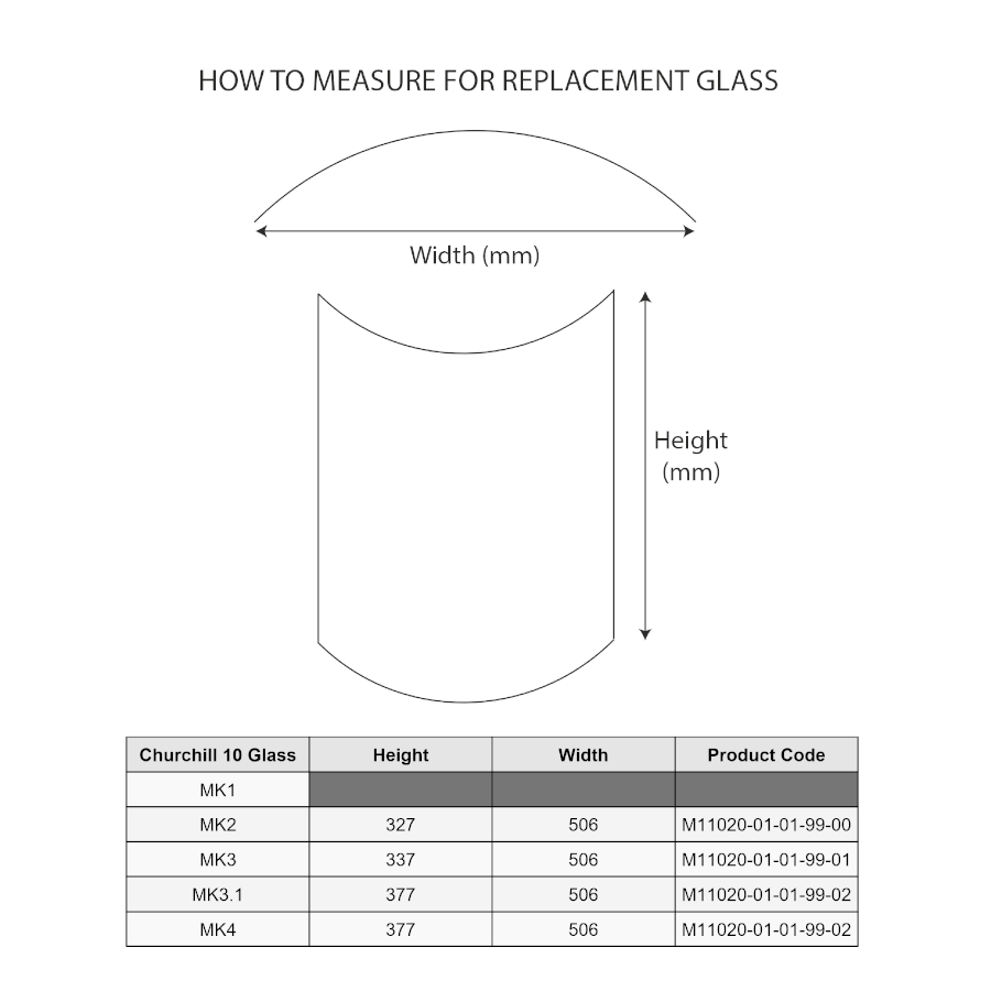 This curved ceramic glass fits the Churchill 10 MK3.1 and Churchill 10 Mk4.