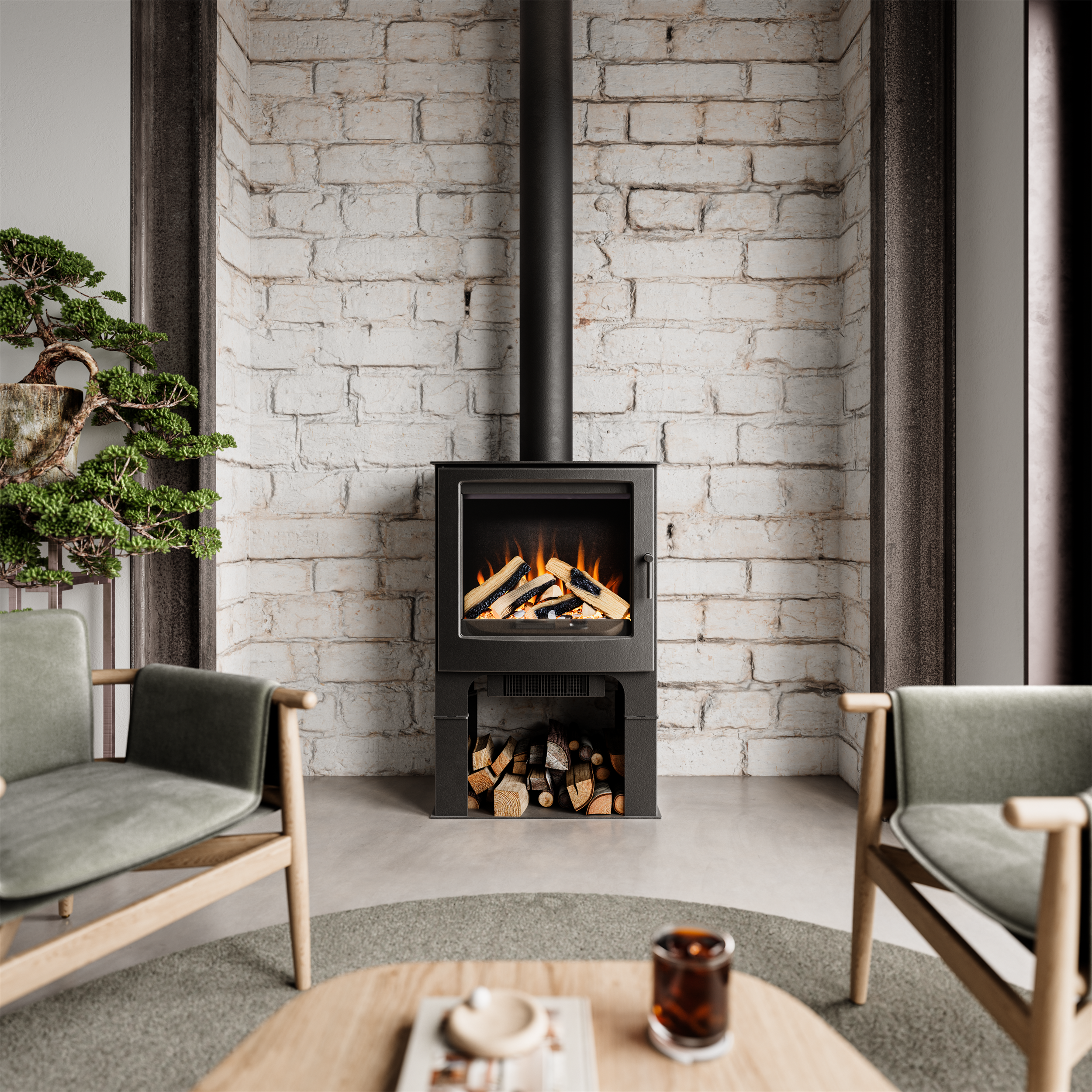 Introducing the Woodland Electric LCD Logstore, a stunning evolution of our award-winning Woodland woodburning stove. Combining the classic appeal of a traditional log burner with the convenience of an electric fire, this model makes a bold statement with its integrated logstore base, adding both height and character to any room.